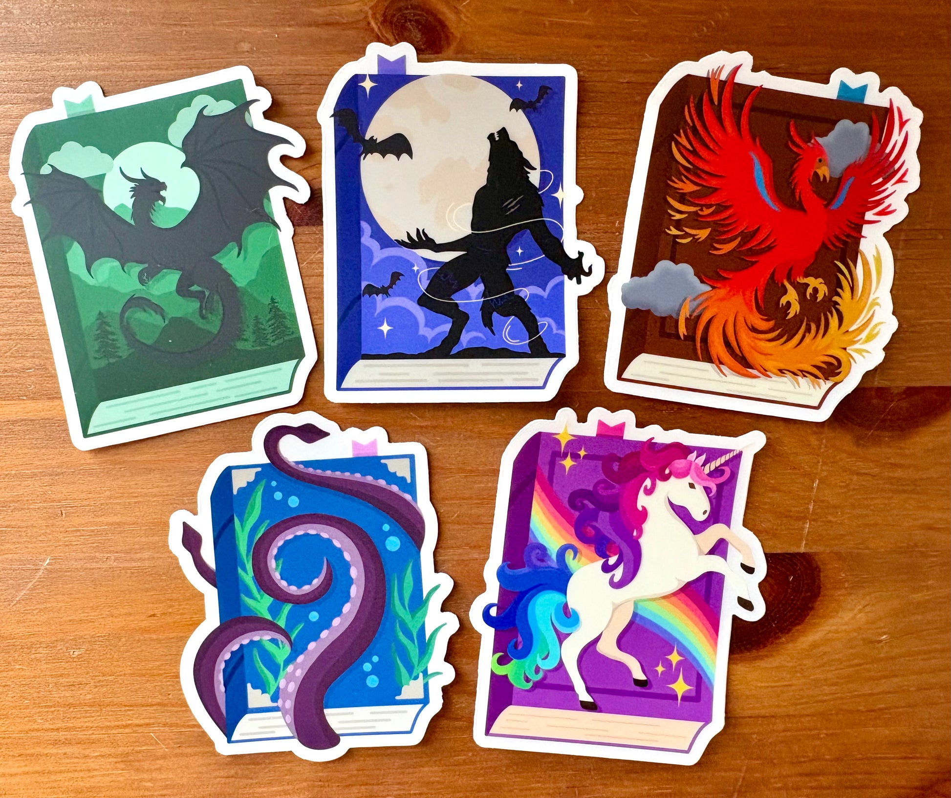 Grab our newest addition to our store! The Mythical Books Collection sticker pack includes 5 vinyl stickers in each pack.